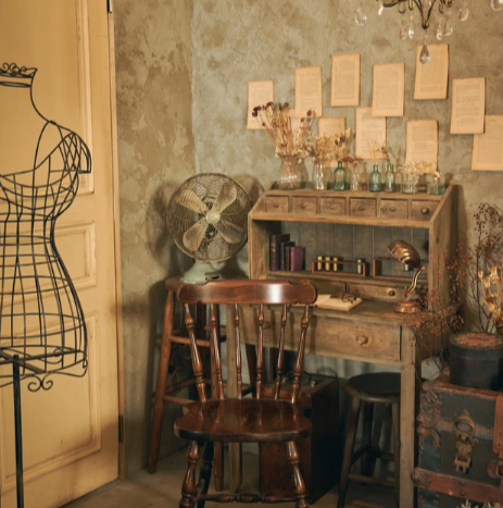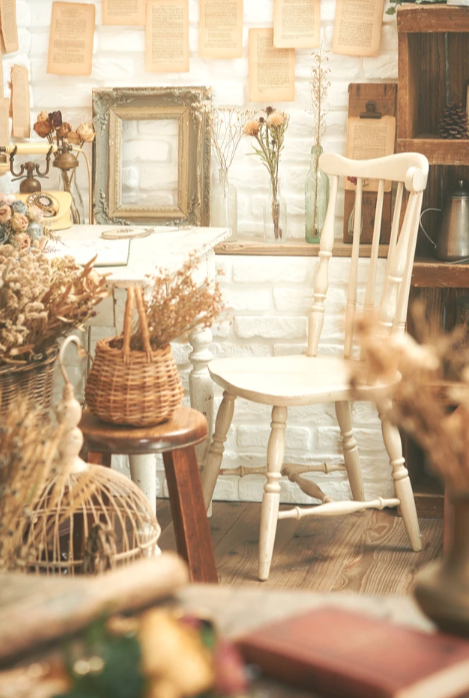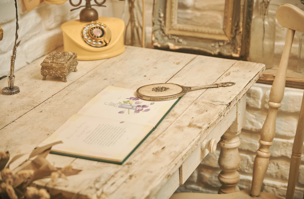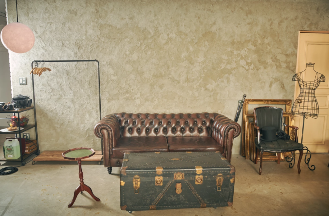 1930年代の額縁やフランス製の机、大中小様々なトランク、楽器など、アンティークの小道具も豊富に揃い、背景の飾りとしても活躍します。