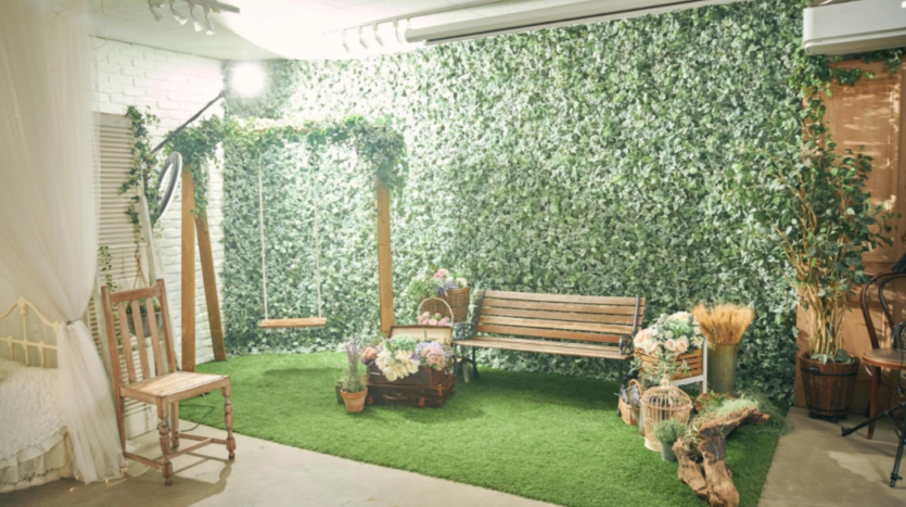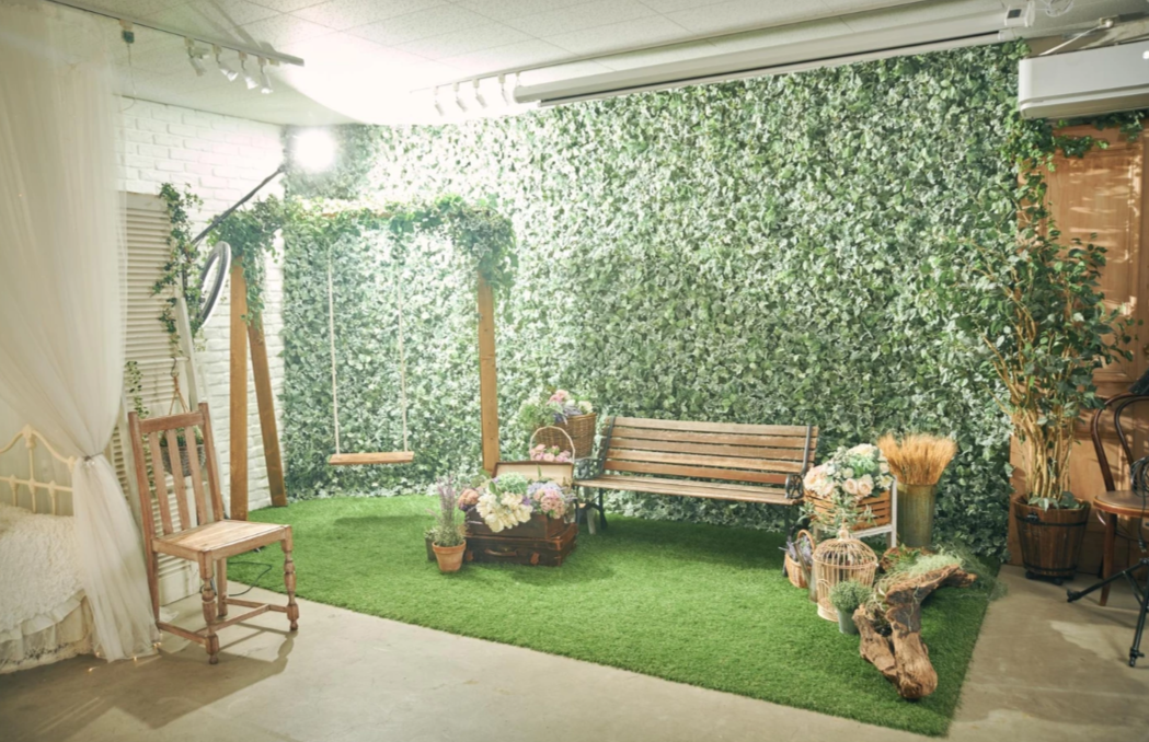 お花茶屋駅から徒歩5分の場所にある、撮影スタジオです。背景はストロボ使いで多様な表情を生むコンクリート壁やナチュラルにもクールにも撮れる白レンガ壁の他、公園のベンチを連想させるグリーン背景などが揃っています。古い洋書が並ぶ本棚もあり、ディテールにこだわったシチュエーションを作りこむことも可能。