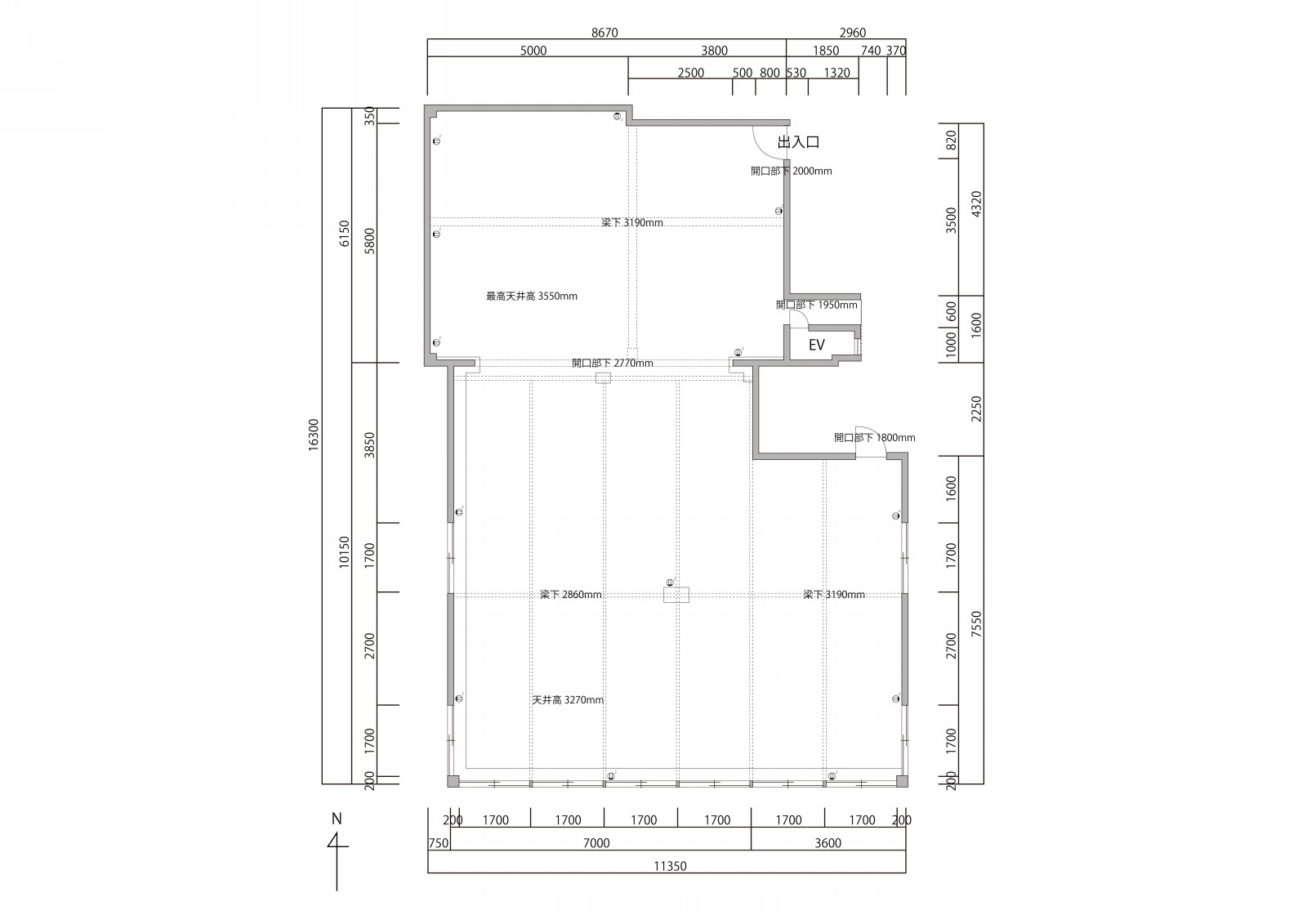 天井高さ 3.55m