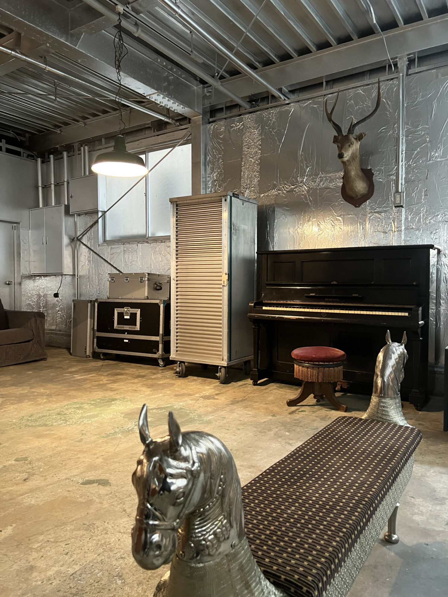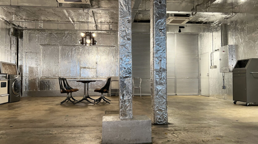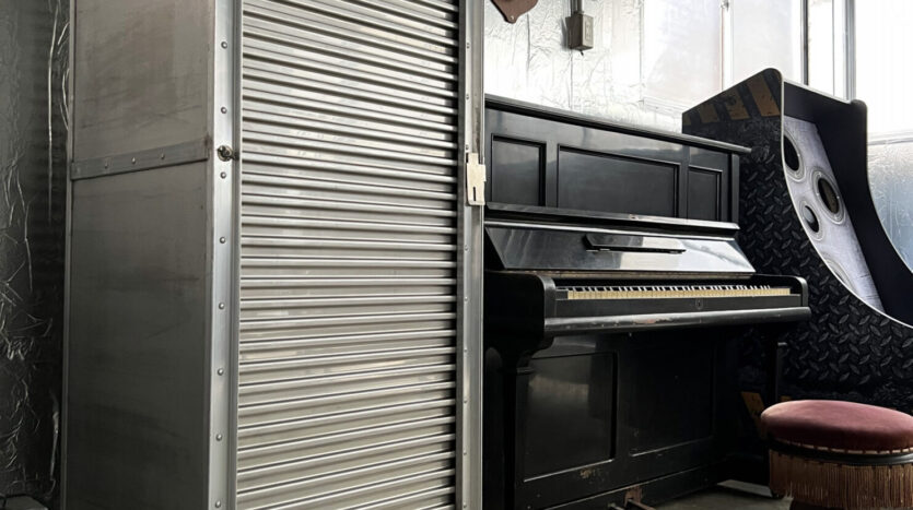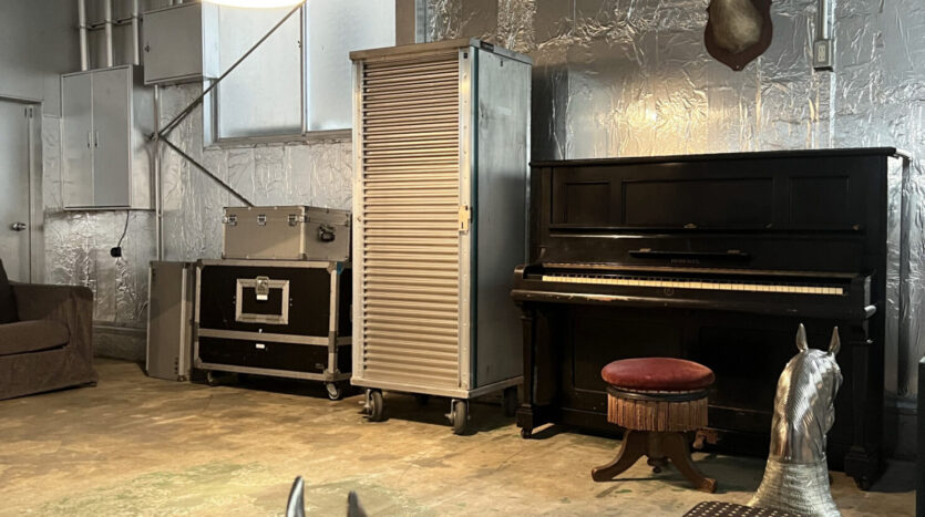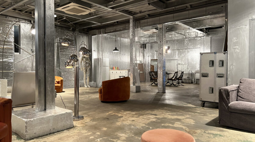 160㎡の広々としたスタジオは、壁・天井、仕切りにも使えるスクリーンカーテンにいたるまでシルバー色に彩られ、メタリックでモダンな空間を生み出しています。用意されているプロップもシルバー色が採用され、その中で100年前のピアノをはじめ、アンティークな家具やモダンな家具が混在することで異彩を放っており、良いアクセントとなっています。撮り手の創造力をかきたてられるスタジオです。