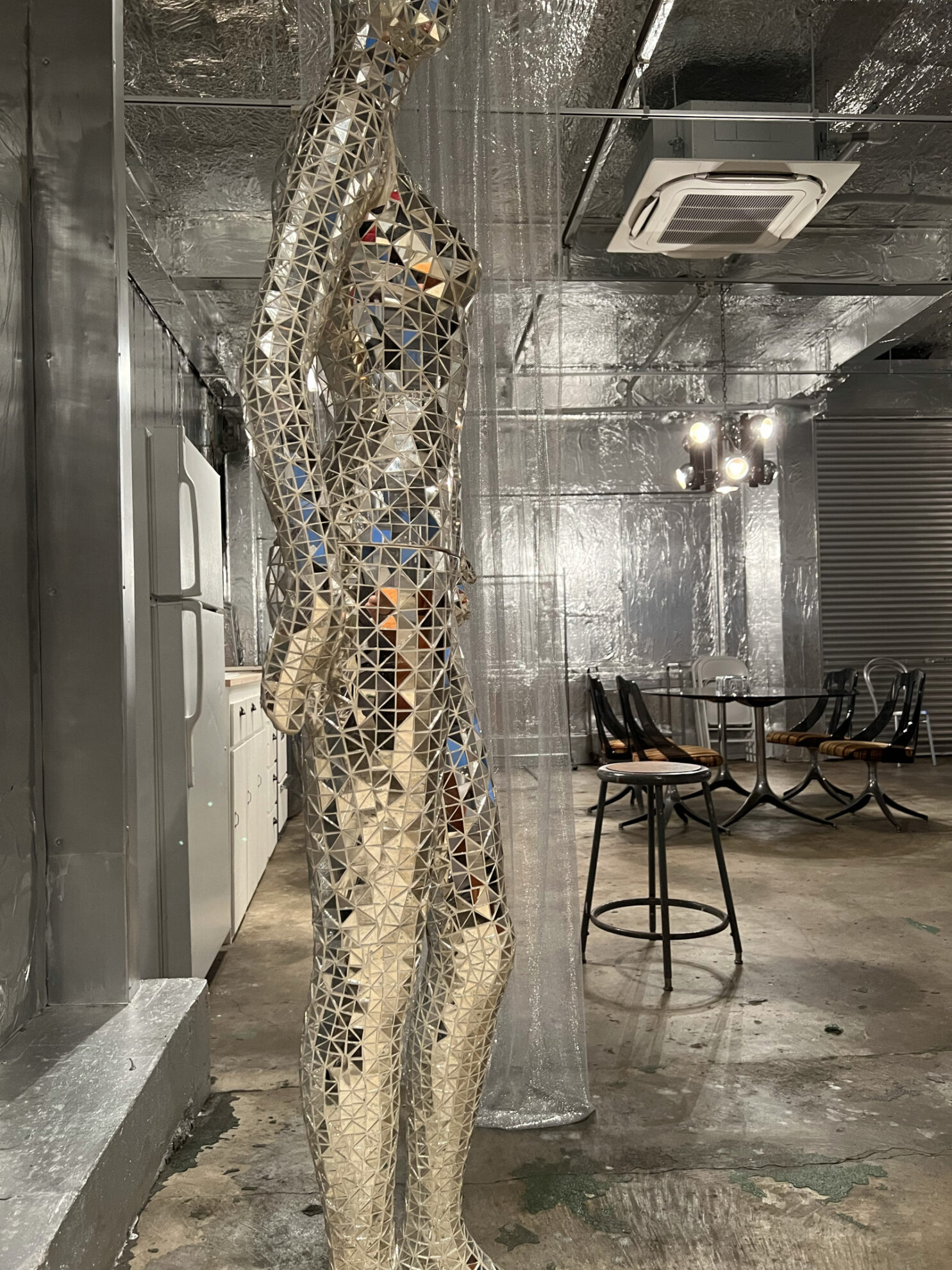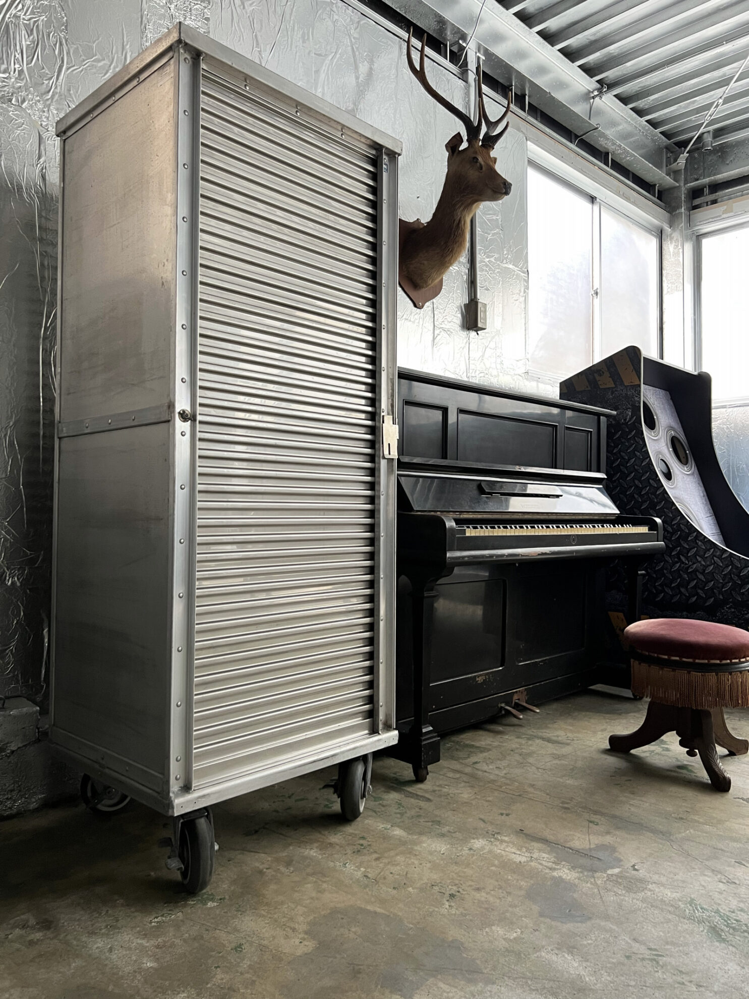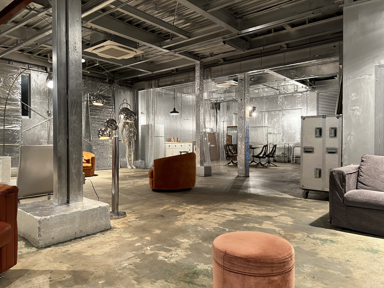 160㎡の広々としたスタジオは、壁・天井、仕切りにも使えるスクリーンカーテンにいたるまでシルバー色に彩られ、メタリックでモダンな空間を生み出しています。用意されているプロップもシルバー色が採用され、その中で100年前のピアノをはじめ、アンティークな家具やモダンな家具が混在することで異彩を放っており、良いアクセントとなっています。撮り手の創造力をかきたてられるスタジオです。