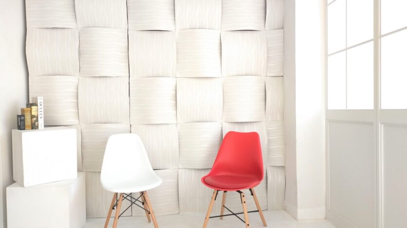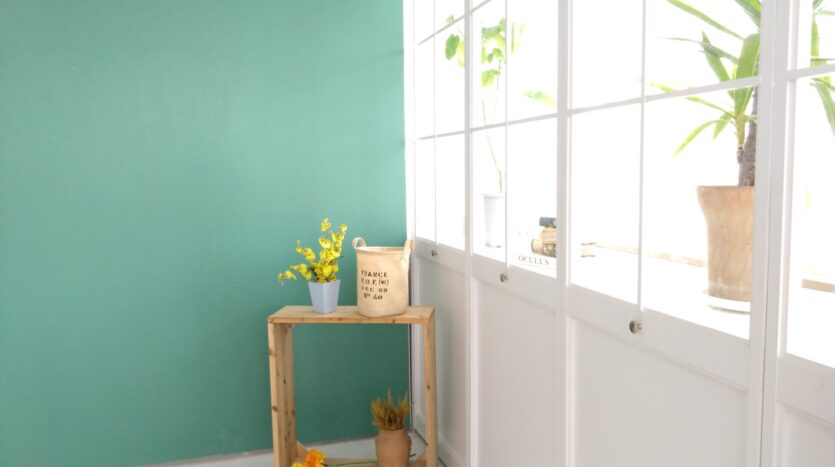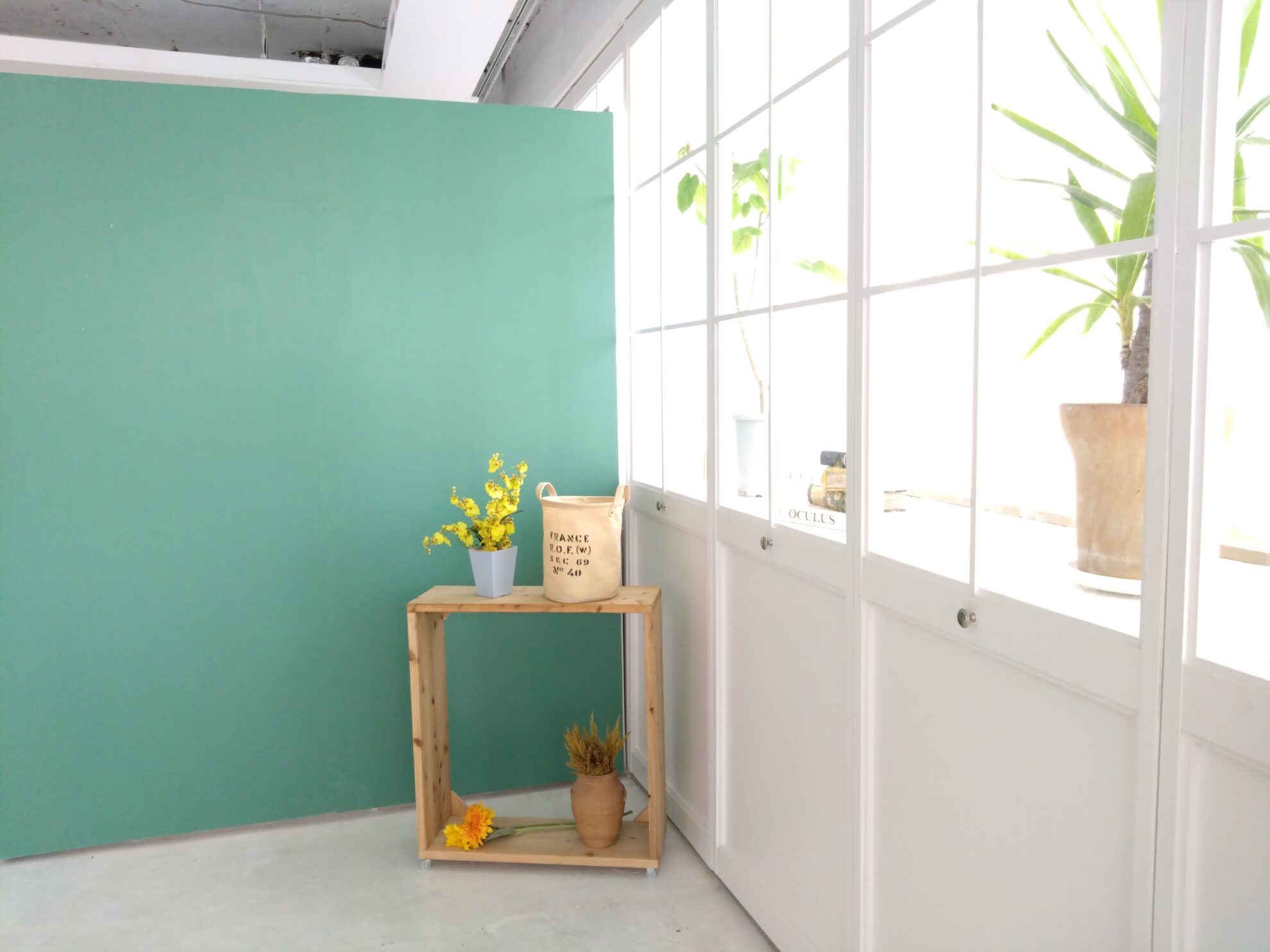スタジオメインルームはシンプルに仕上げられたワンルームですが、移動できるパーティションや、背景壁を利用してレイアウト変更ができます。また、撮影シーンに合わせてグリーン、ピンク、グレーストライプ、凹凸のある壁、白壁、鉄柵のあるすりガラスといった多様な背景を選べるのも魅力です。