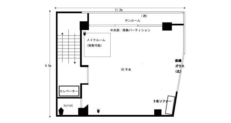 - 軽飲食は可能です。飲食の際には床、壁の汚れに十分ご注意下さい。