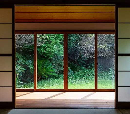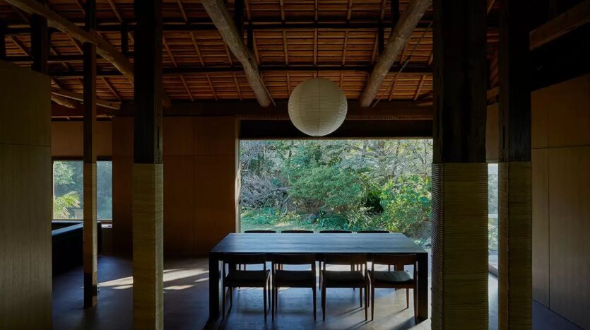 1000㎡を超える敷地は、四季を織りなす豊かで多様な木々に囲まれており、中心に鎮座する贅沢な平屋の建物から自然を感じさせてくれます。また、木漏れ日が優しい光を作り出し、間接光を使ったような撮影も期待できます。