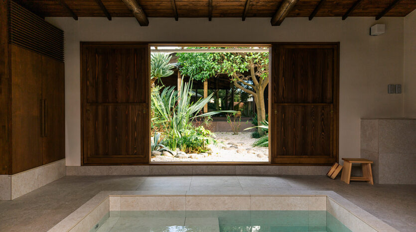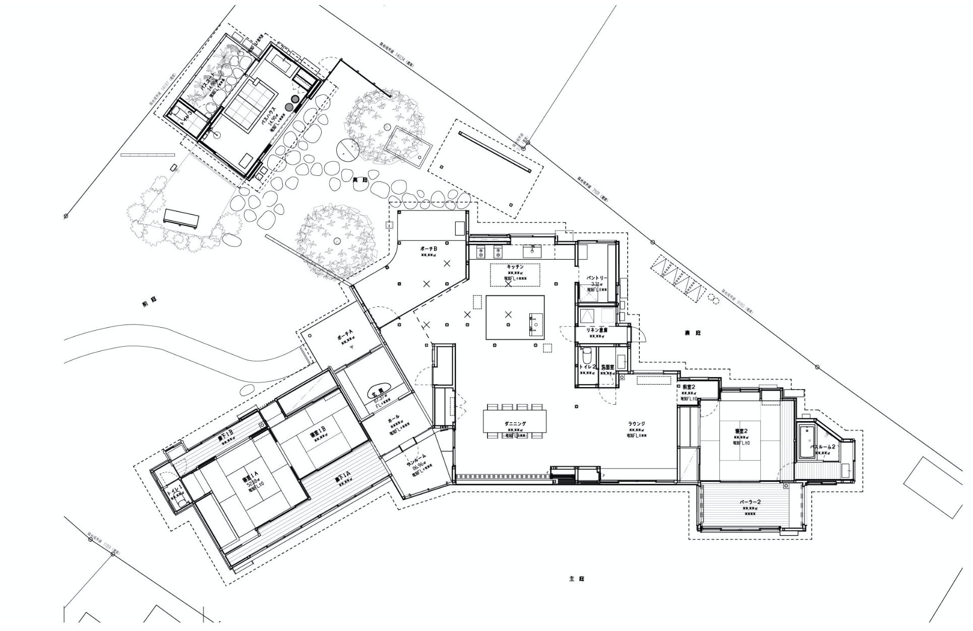 室内は純和風な和室3部屋とリゾート地に迷い込んだかのようなダイニング・ラウンジエリア、プロのスツールを取りそろえた広々としたキッチンで構成され、さまざまなシチュエーションに対応できます。また、離れにはバスハウスがあり、こちらも和モダンなテイストに仕上がっています。